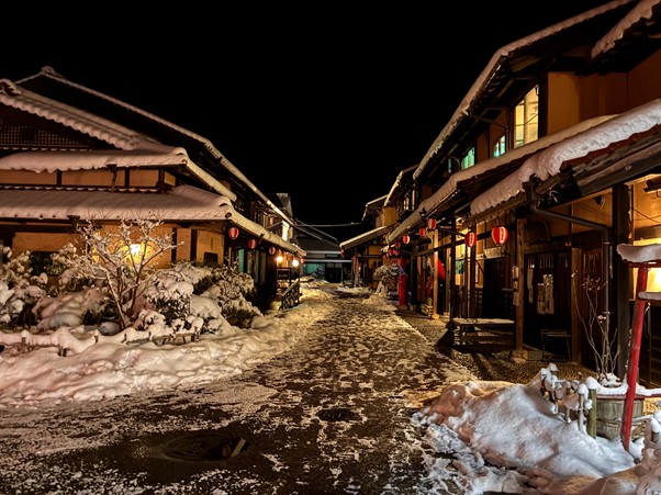 プランの形が決まりきらない中、宿泊地の神楽門前湯治村へ。ここは市内随一の観光地で伝統芸能「神楽」やご当地料理の「夜叉うどん」が有名です。
